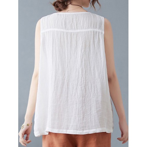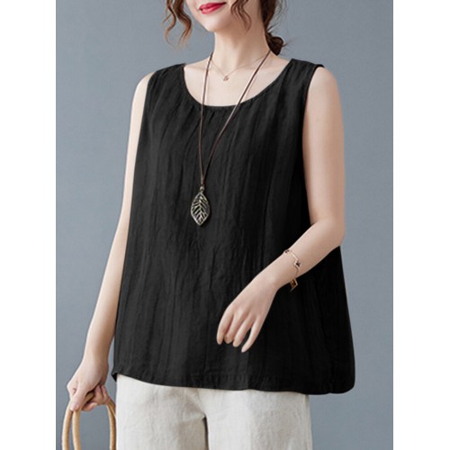 Cotton Solid Round Neck Sleeveless Casual Tank Top