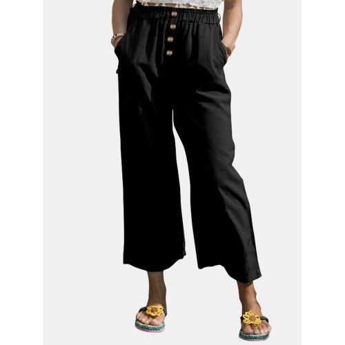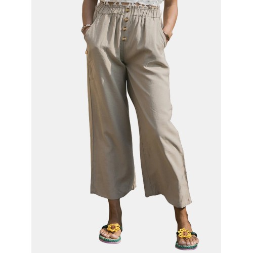 Solid Color Wide legged Elastic Waist Cotton Pants