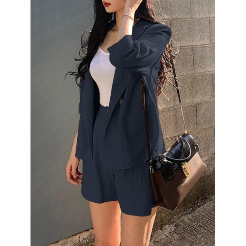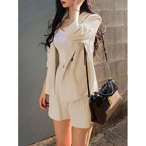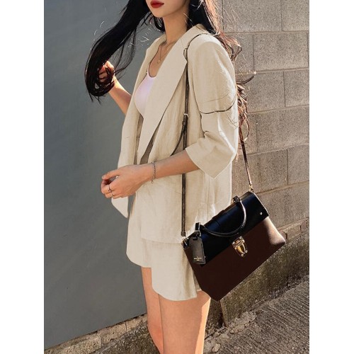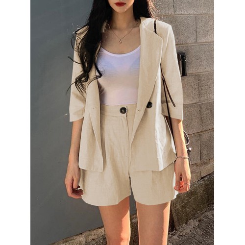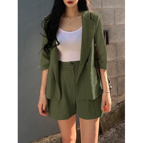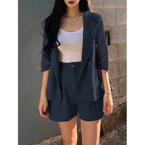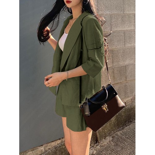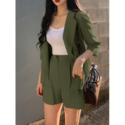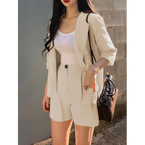 Solid 3 4 Sleeve Lapel Elastic Waist Two Pieces Suit
