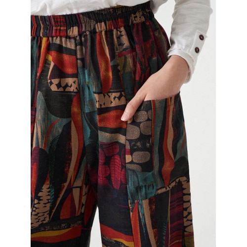 Vintage Print Dual Pocket Elastic Waist Pants For Women