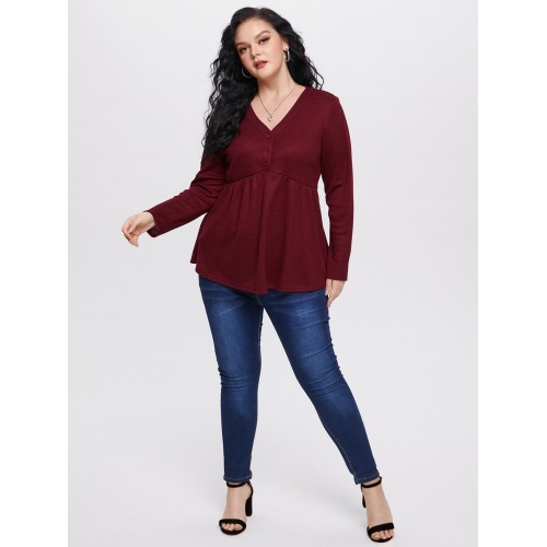 YOINS BASICS Plus Size V neck Button Design Knitwear