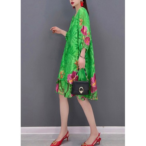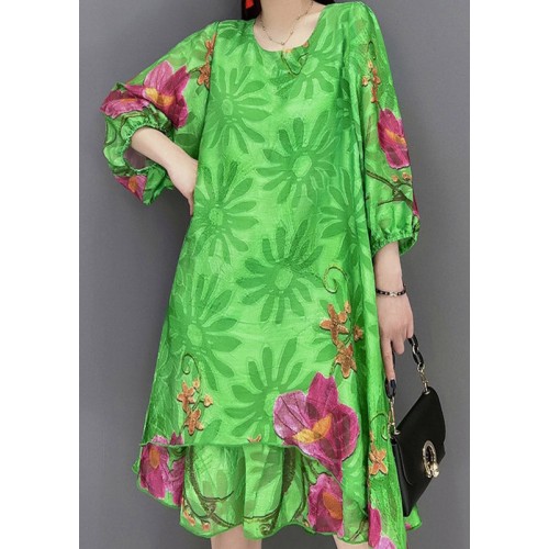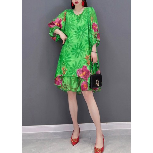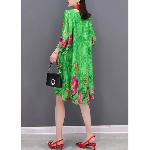 Fashion Green O Neck Print Chiffon tops and shorts two pieces Three Quarter sleeve