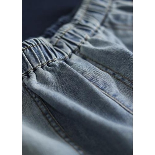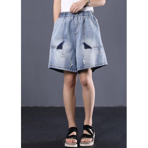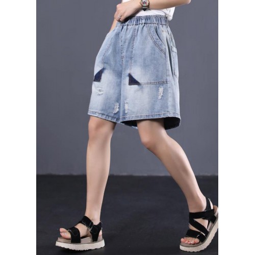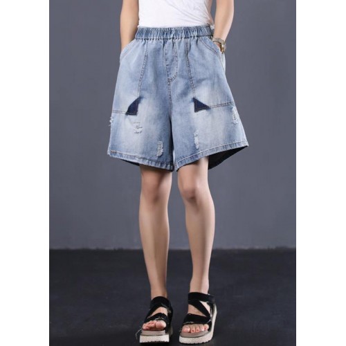Korean version loose retro washed white Ming line denim shorts